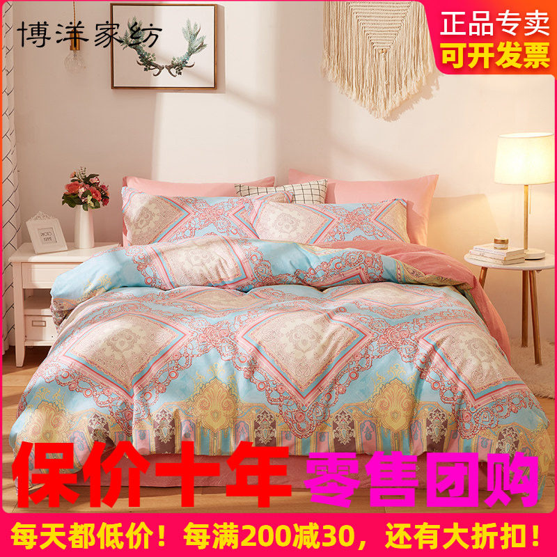 博洋磨毛纯棉四件套秋冬天加厚全棉床上用品床单被套三件套床笠款
