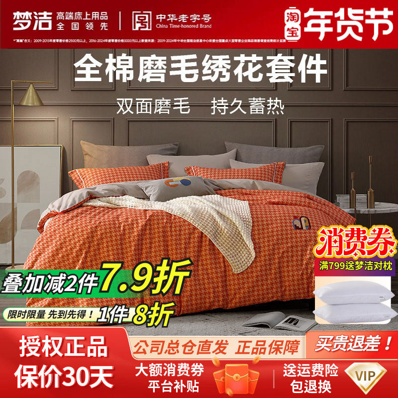 梦洁家纺磨毛四件套被套248x248床单全纯棉加厚秋冬高端2025新品