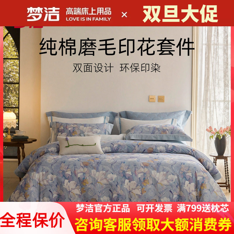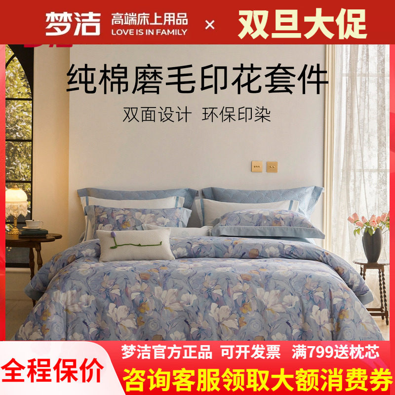 梦洁家纺床上磨毛四件套双面全棉纯棉高级感加厚被套床单繁花摇曳