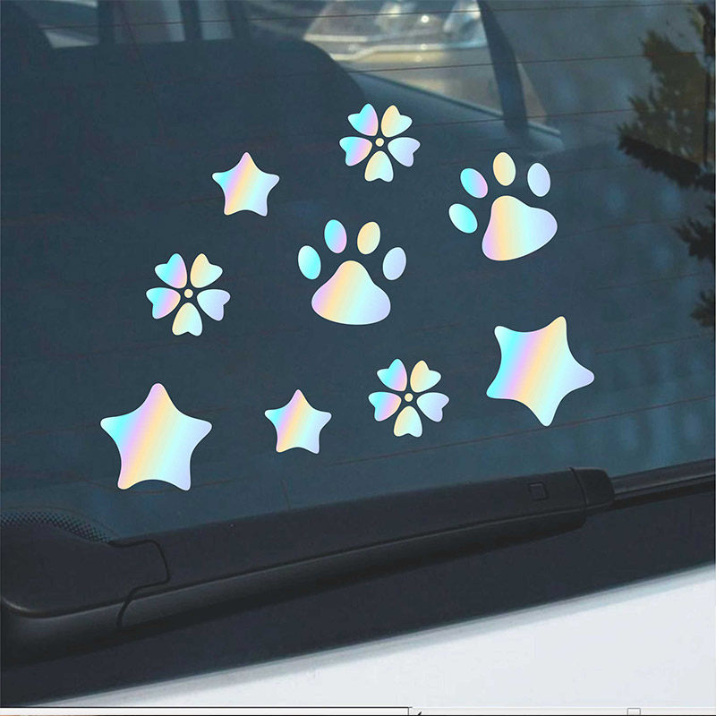 汽车车身镭射彩色贴纸创意个性脚印花朵星星羽毛火焰纯色电动车贴
