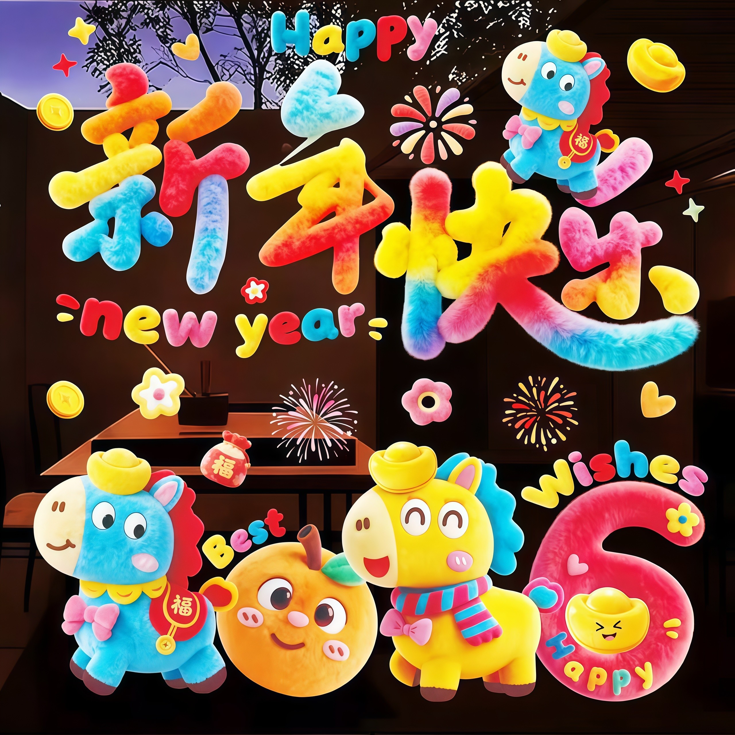2026新年窗花静电贴窗贴新年装饰春节福字橱窗5D毛绒玻璃彩色贴纸