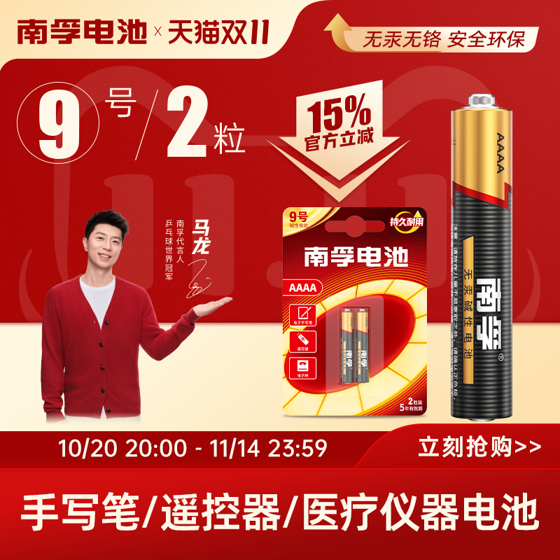 南孚碱性电池9号电池1.5V电子手写笔触控笔九号电池2粒AAAA电池手写笔蓝牙耳机遥控器医疗仪器电池