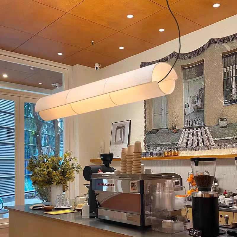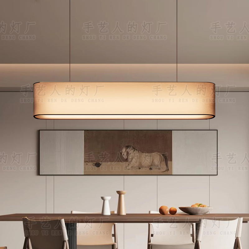 侘寂风长条布艺灯日式餐厅前台吊灯咖啡馆餐饮店铺商用吧台一字灯