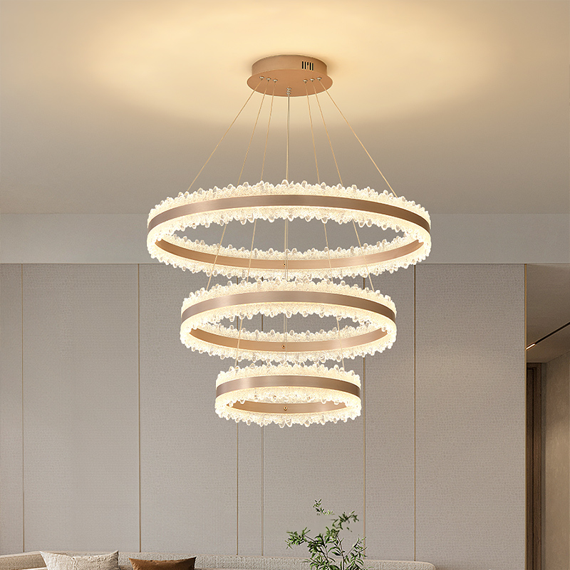 轻奢水晶吊灯圈圈圆形客厅饭厅卧室楼梯吊灯美容院婚纱店前台吊灯