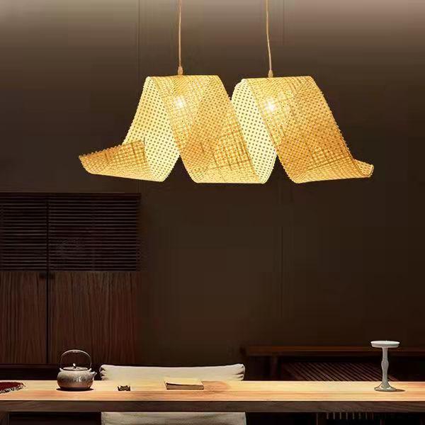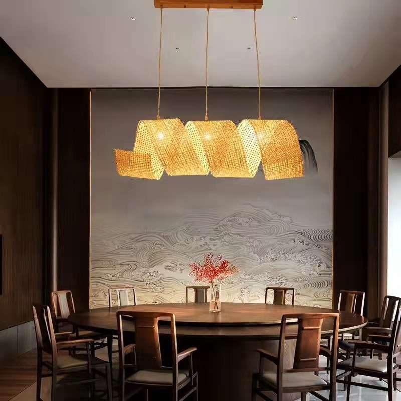 新中式吧台长条竹艺吊灯禅意茶室餐厅日式竹编灯中式前台民宿竹灯