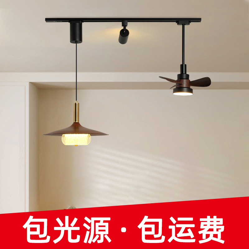 2025新款法式餐厅灯中古风升降可移带胡一字型风扇前台饭厅吊灯