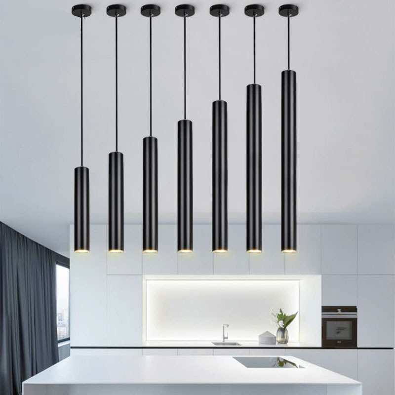 简约现代led餐厅吧台灯时尚长筒圆柱形创意个性前台吊灯单头黑色