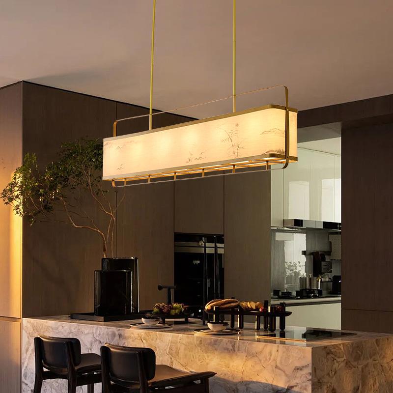新中式长方吧台餐厅布艺日式茶室禅意酒店书房餐饮民宿前台吊灯具