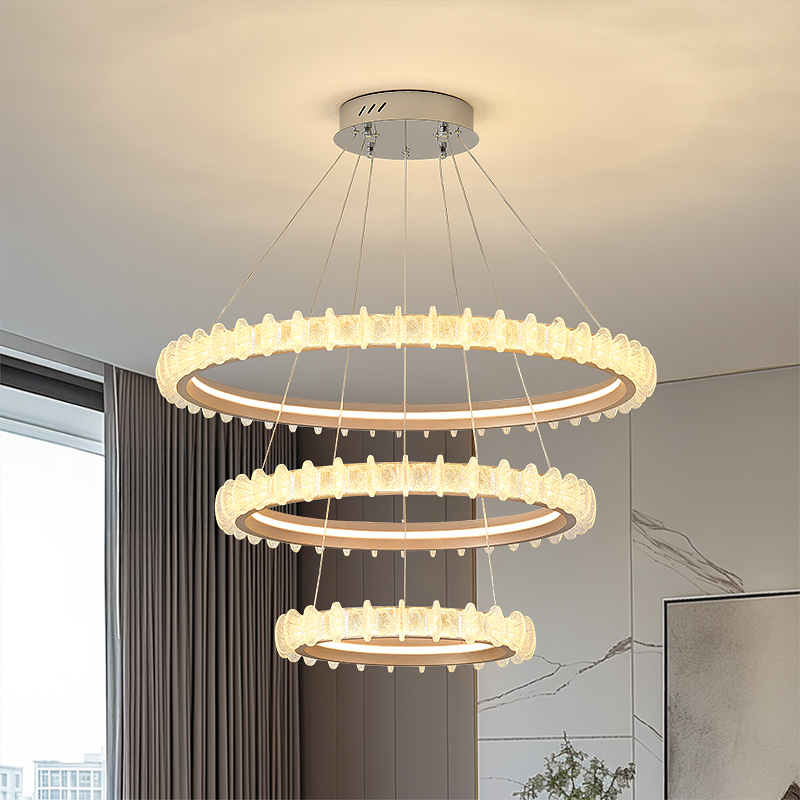 2025年新款轻奢圈圈灯客厅楼梯饭厅卧室前台吊灯圆环形压克力极简