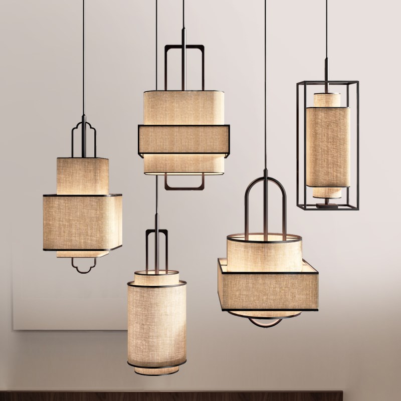 新室YFU中式茶禅意吊灯间民卧室床头灯宿前台餐厅吧台组包合布艺