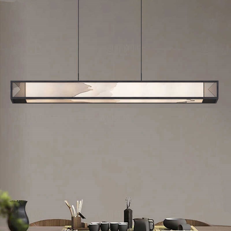 新中式禅意吊灯长条餐厅灯中国风岛台吧台灯东方美学书房茶室吊灯