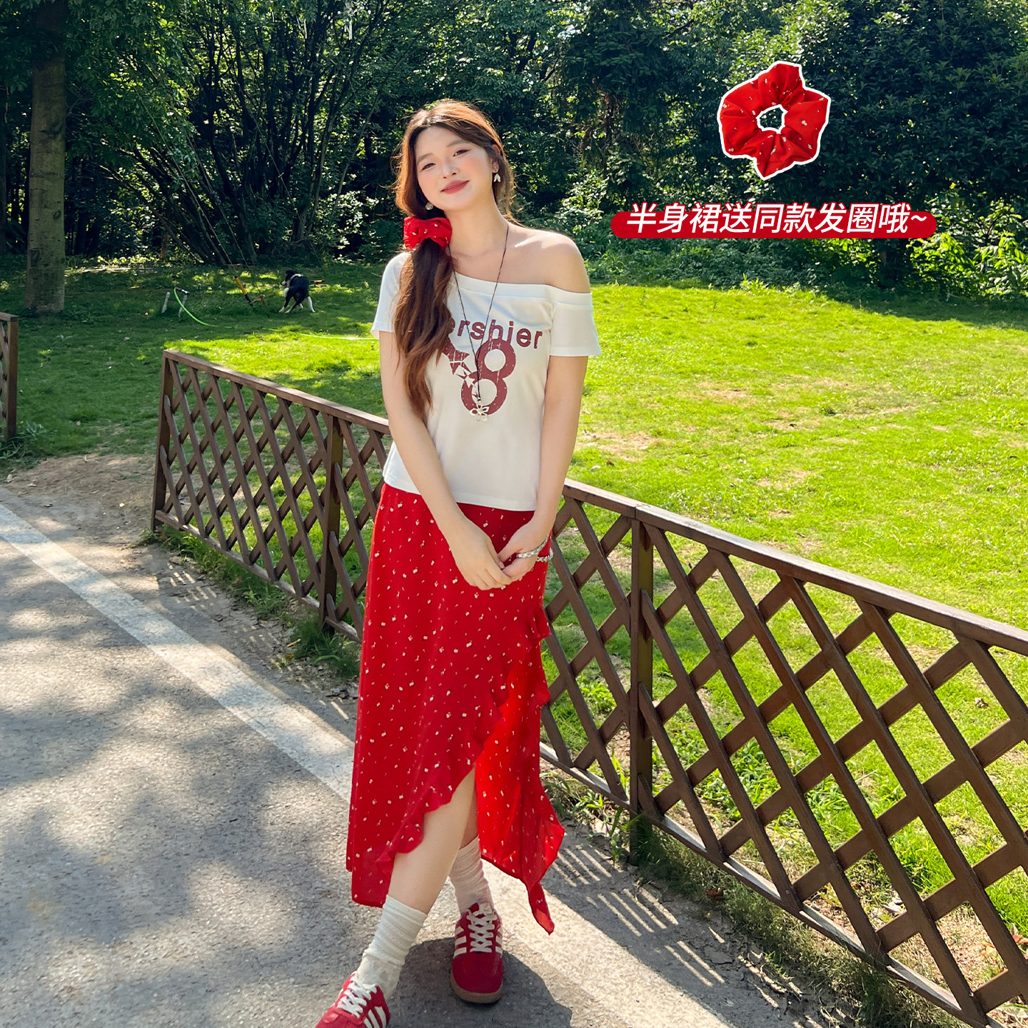 大码胖mm法式海边度假风碎花半身裙夏季新款高级感一字肩T恤套装