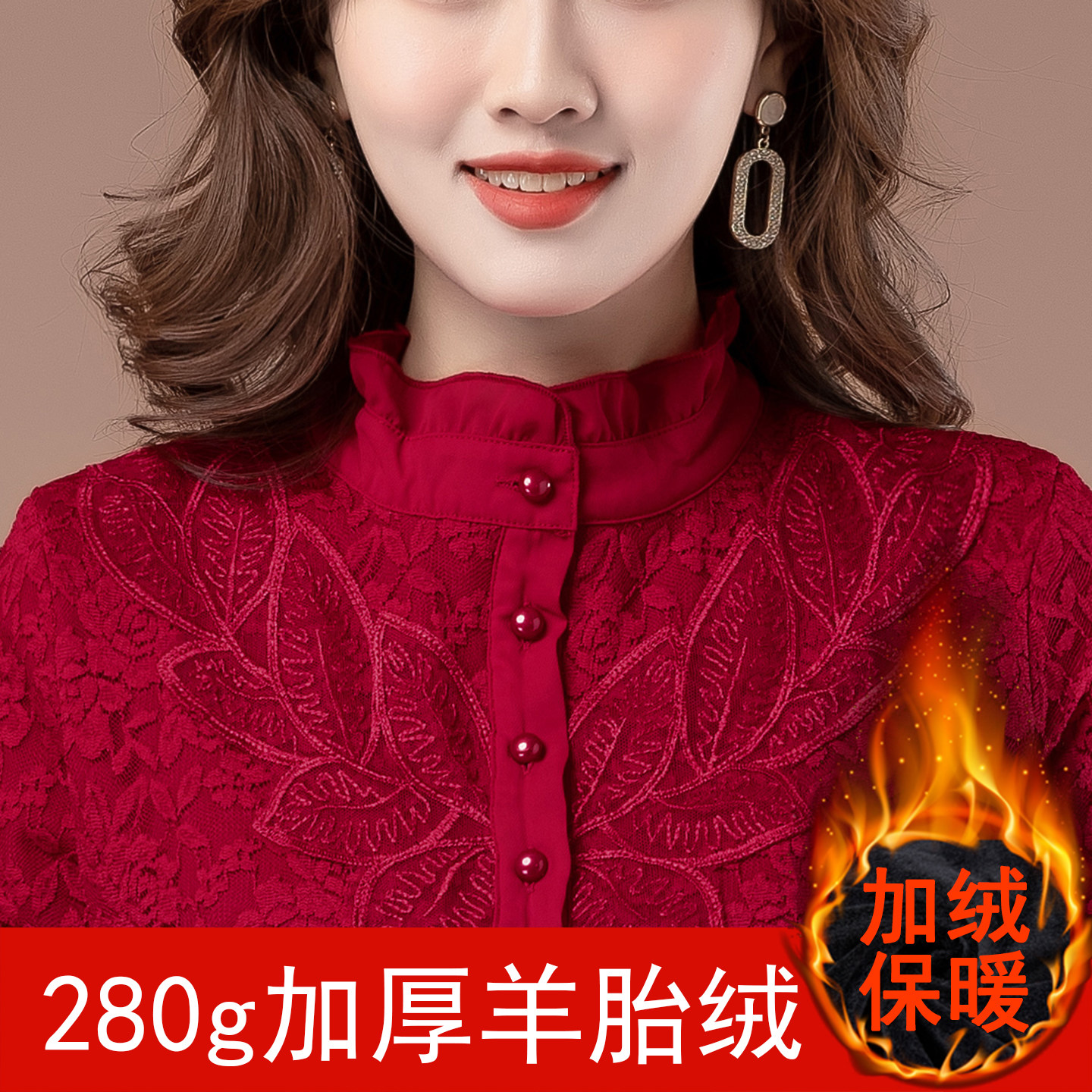 中老年妈妈加绒加厚蕾丝品牌打底衫女正品高档时尚大码可外穿秋衣