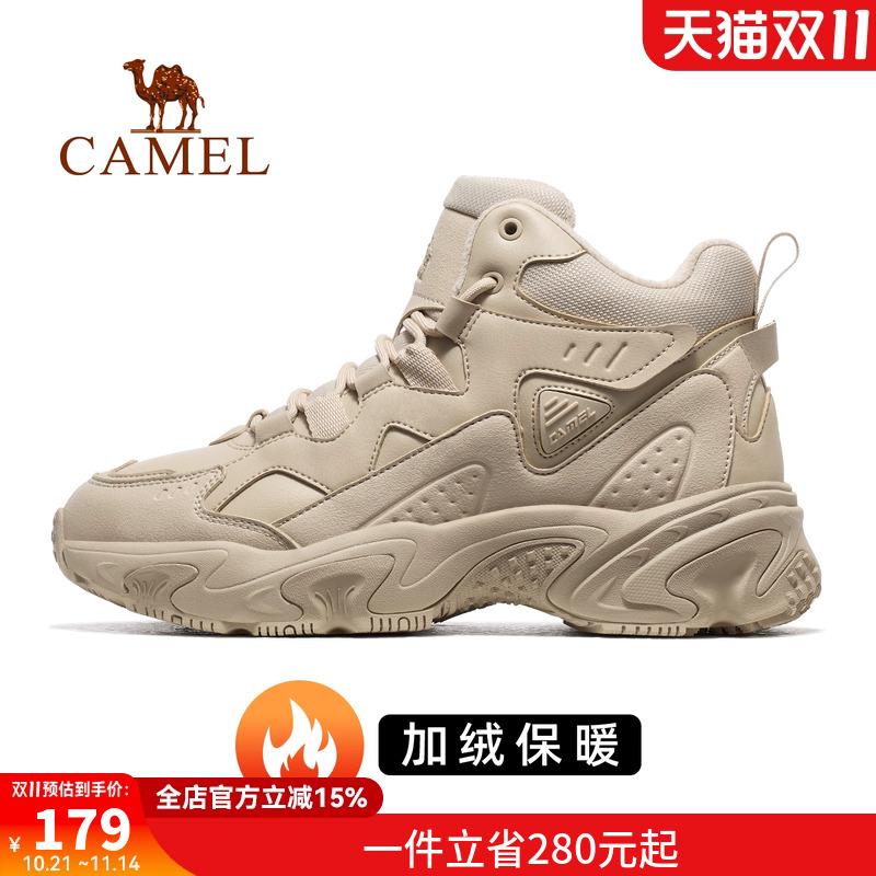 骆驼女鞋2025秋季新款加绒老爹鞋女厚底棉鞋女高帮鞋保暖雪地靴子