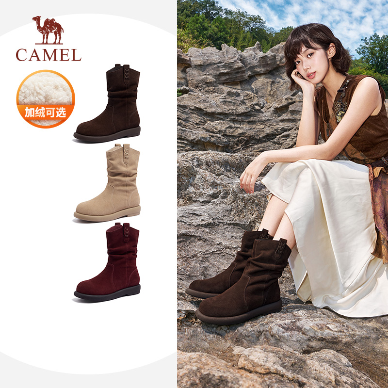 骆驼女鞋2025秋季新款 「巴恩」西部复古短靴休闲沙漠风堆堆靴