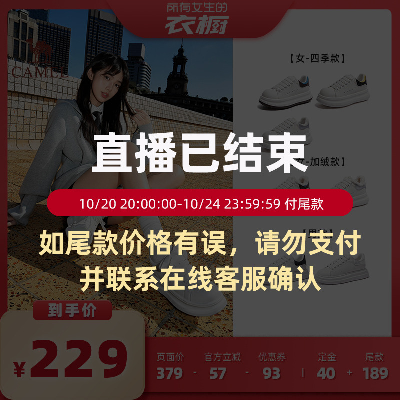 【所有女生的衣橱直播间】骆驼女鞋新款加绒休闲板鞋百搭小白鞋男