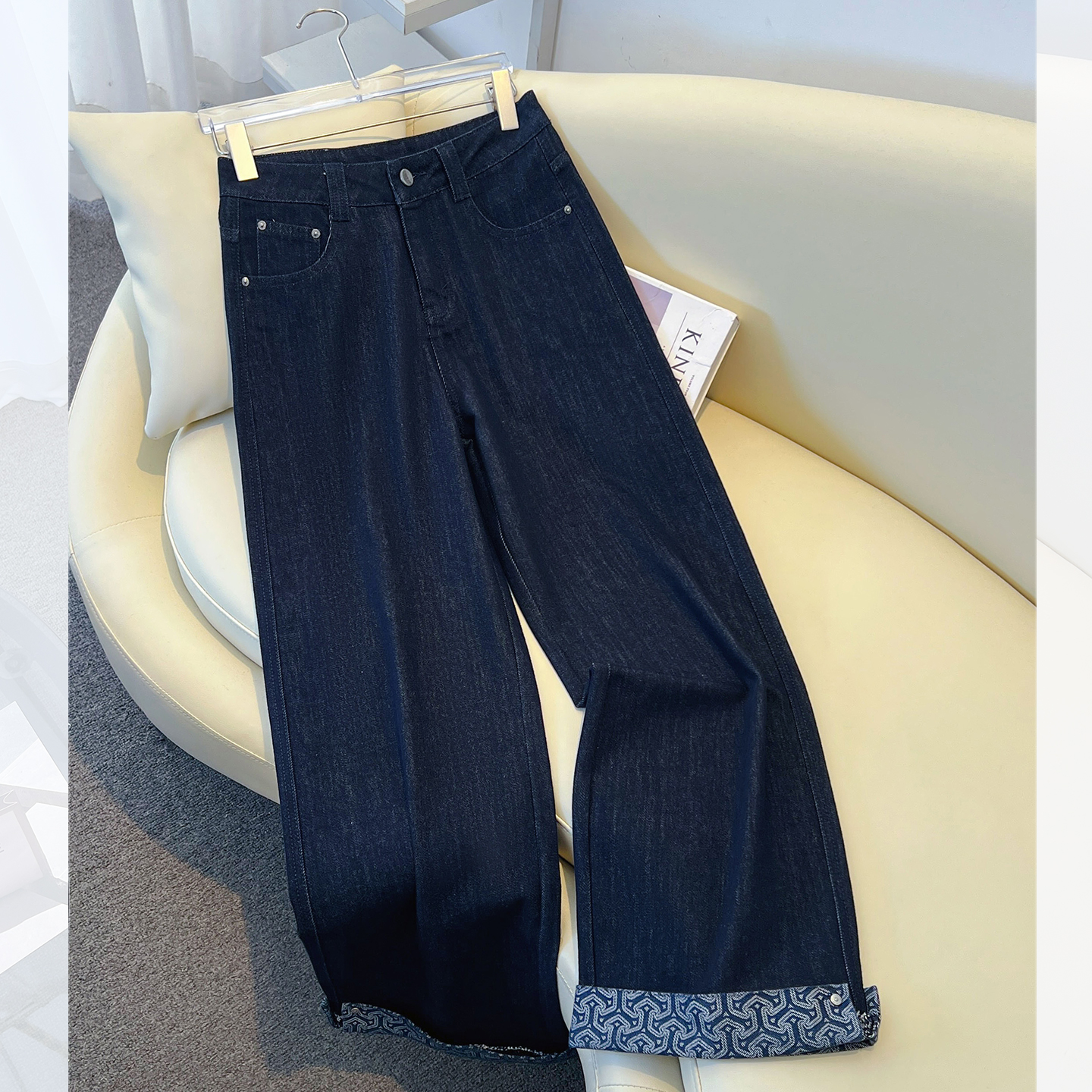 翻边阔腿牛仔裤[第1名]