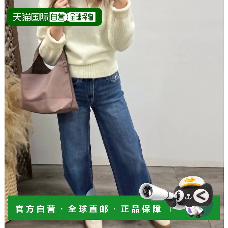 自营vervet中蓝至中蓝的高腰A字型翻边阔腿牛仔裤 美国奥莱直发