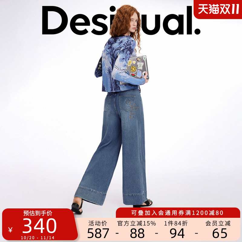 Desigual大西瓜【博主同款】25秋冬新品水洗刺绣翻边阔腿牛仔裤