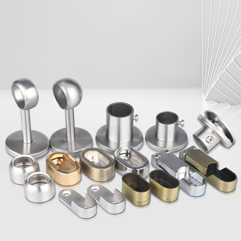 衣柜挂衣杆固定配件不锈钢法兰座衣杆托浴帘杆晾衣杆座圆管五金件