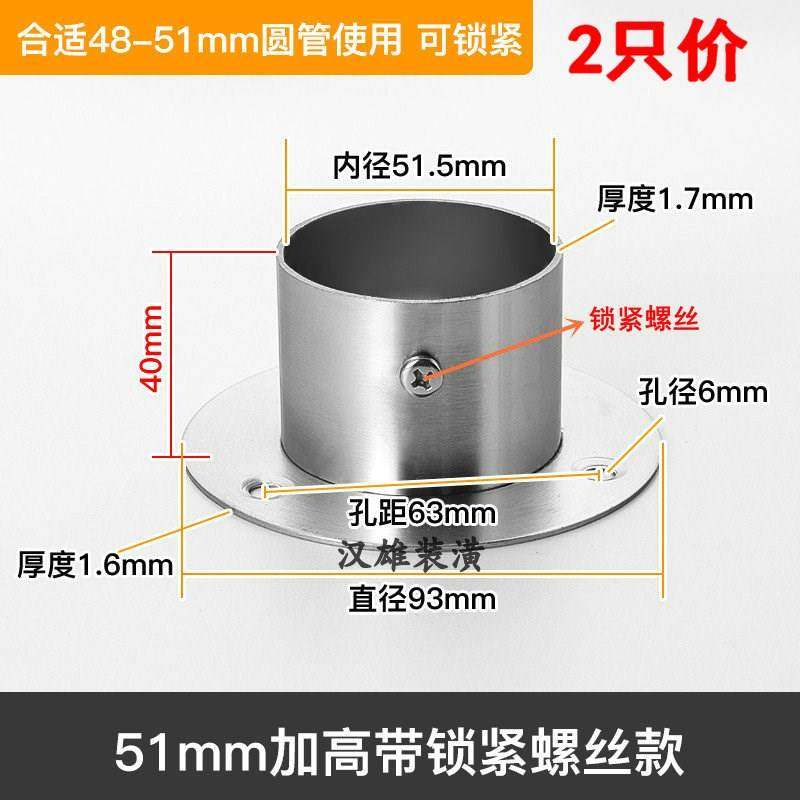 加大不锈钢法兰座阳台护栏圆管座晾衣杆托架固定底座50/51m
