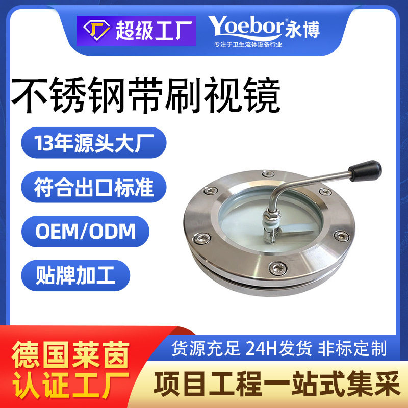活接带双刮刀板视镜304不锈钢法兰雨刮板刀视镜压力管道带硅胶条