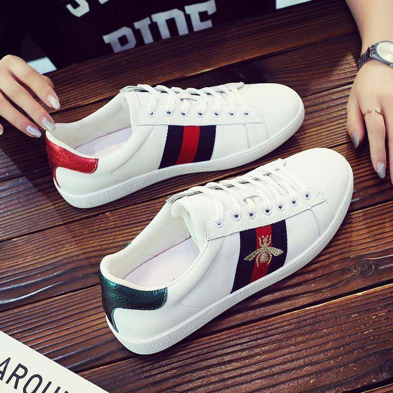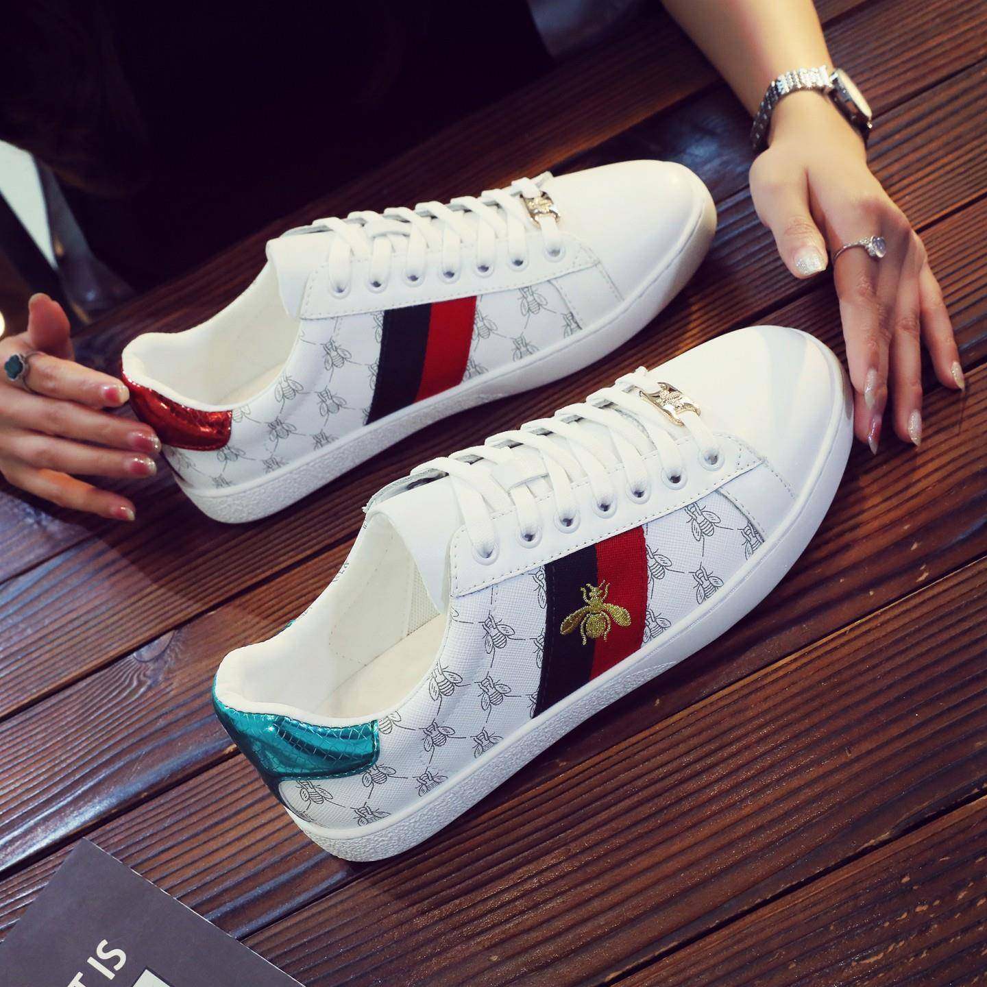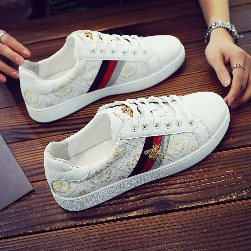 小白鞋情侣2024四季新款休闲板鞋百搭刺绣欧洲蜜蜂平底男女运动鞋