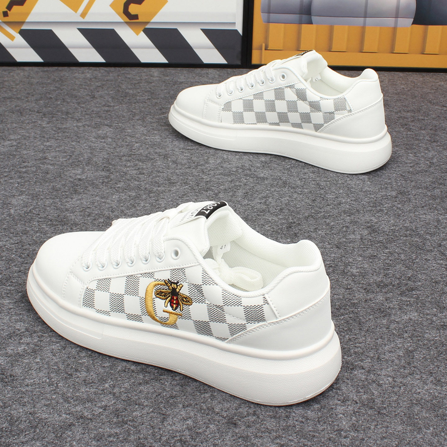 刺绣小蜜蜂小白鞋男潮鞋韩版时尚轻便厚底板鞋格纹复古运动休闲鞋