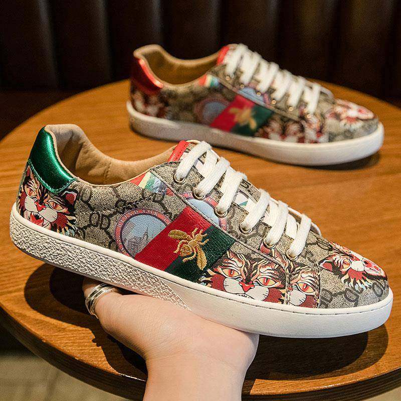 酷奇蛇板鞋男欧洲站新款真皮刺绣小蜜蜂男鞋休闲百搭小白鞋板鞋潮