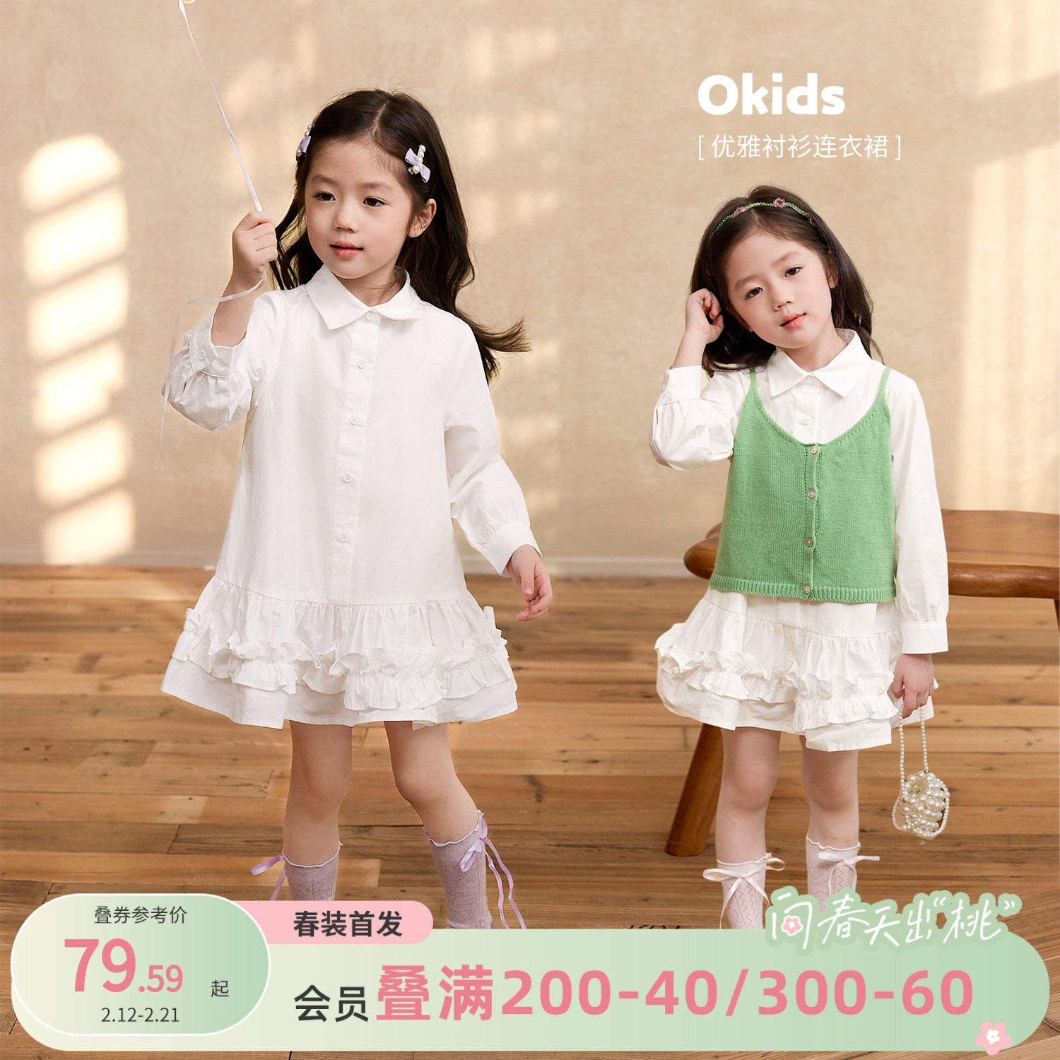 小O宝童装 女宝宝衬衫连衣裙女白色2026春装新款女童荷叶边公主裙