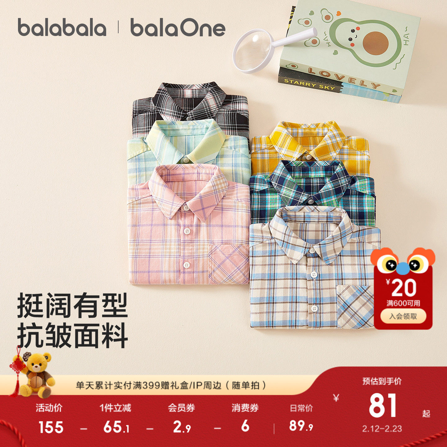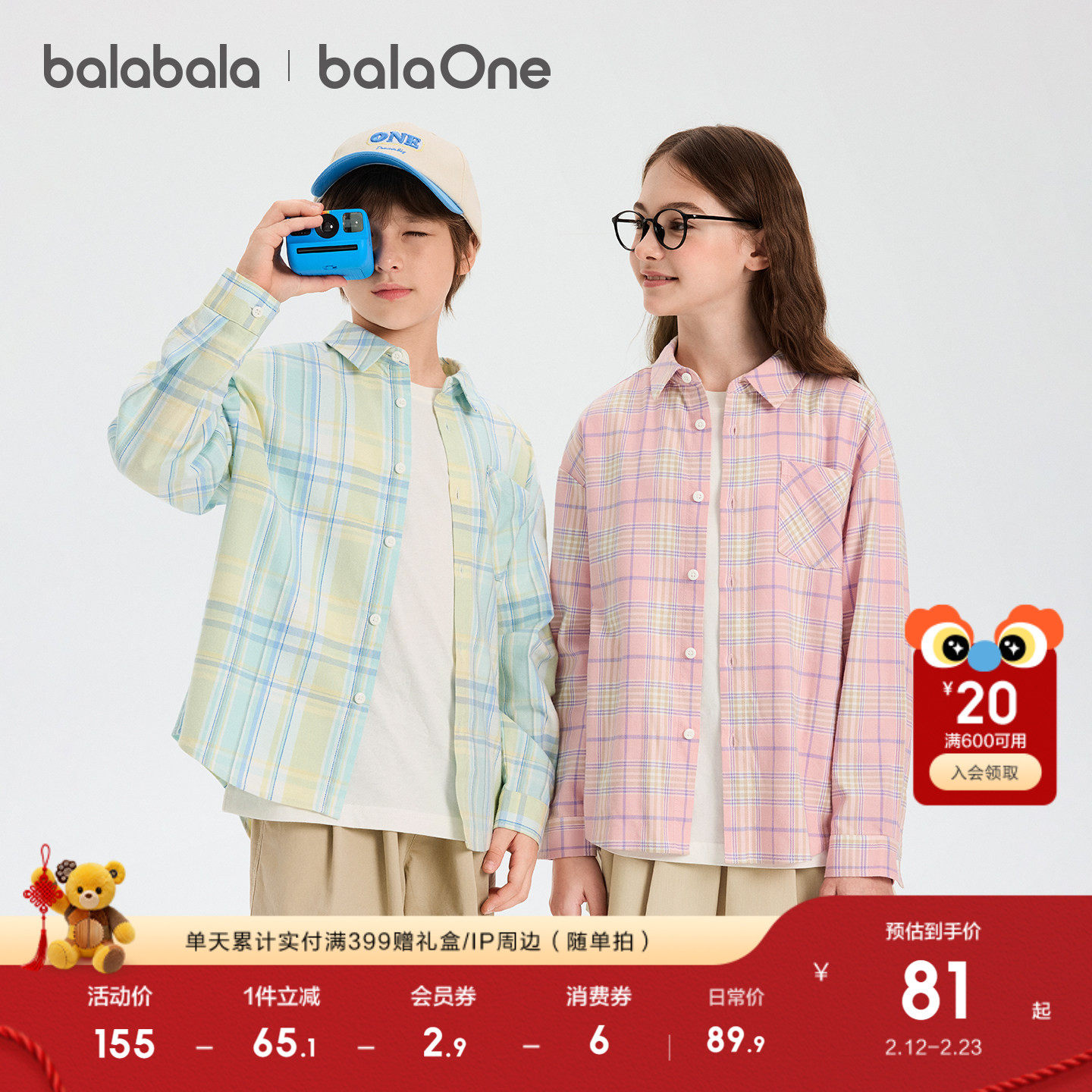 巴拉巴拉童装儿童长袖衬衫宝宝女童男童2026新款春装宽松格纹百搭