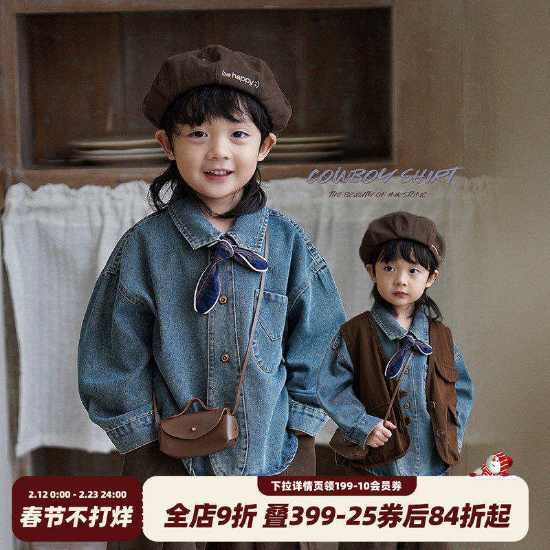 儿童牛仔衬衫秋季2025新款宝宝潮牌衬衣纯色男童软牛仔外套女洋气