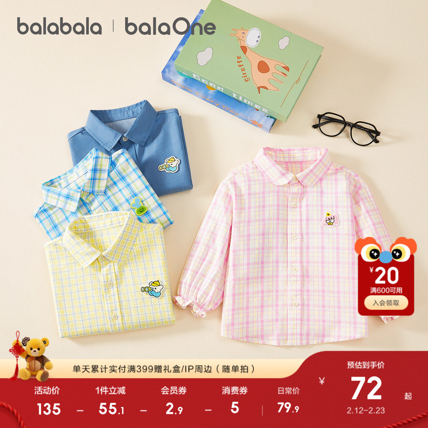 巴拉巴拉童装儿童长袖衬衫婴儿宝宝衬衣女童男童2026新款春格子衫
