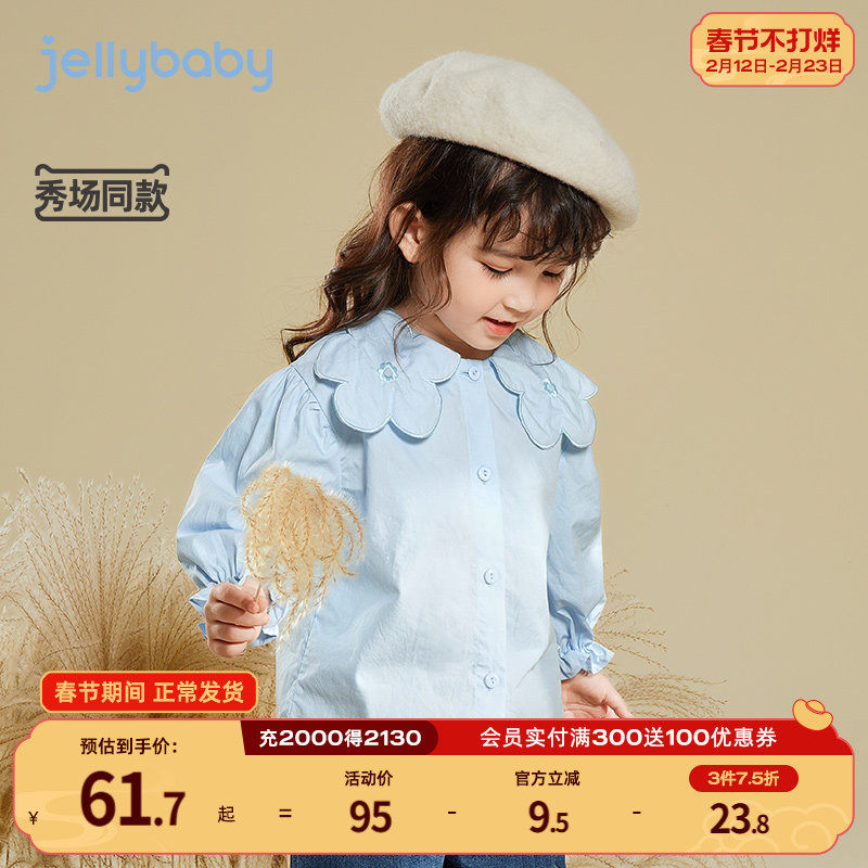 笛莎官方童装女童纯棉衬衫春季新款女孩宝宝儿童甜美娃娃领棉上衣