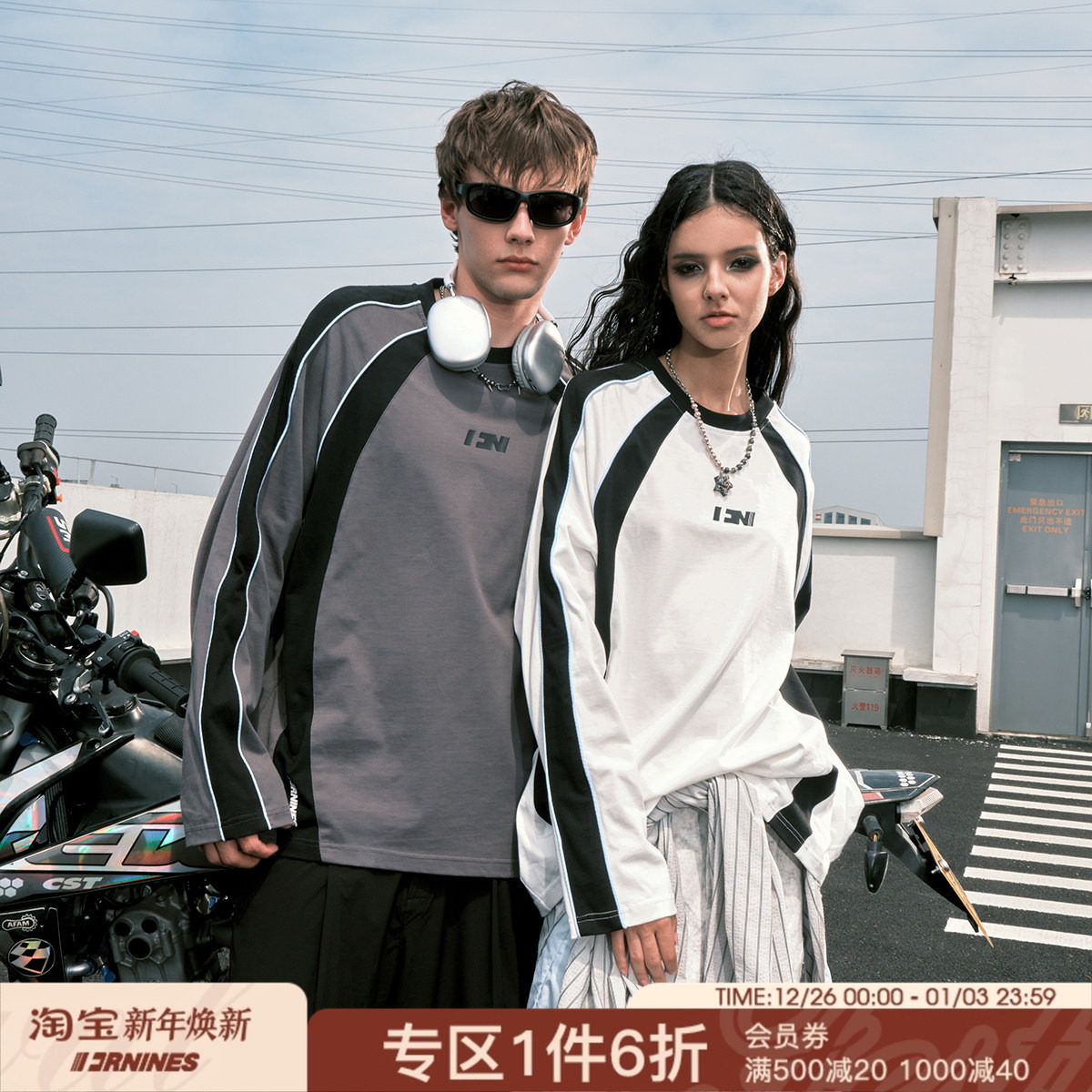 田嘉瑞同款FORNINES美式拼接运动长袖T恤男情侣潮牌重磅春秋卫衣