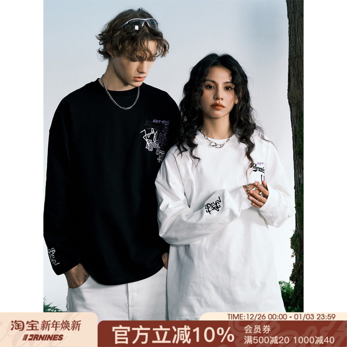 山小川潮牌重磅圆领长袖t恤男秋冬季纯棉国潮美式宽松男生打底衫