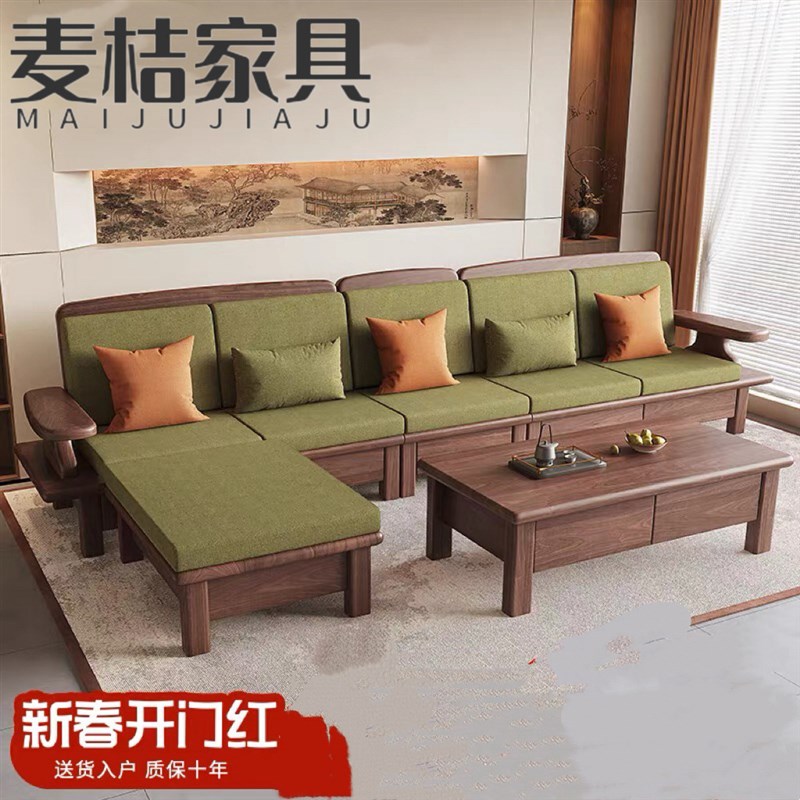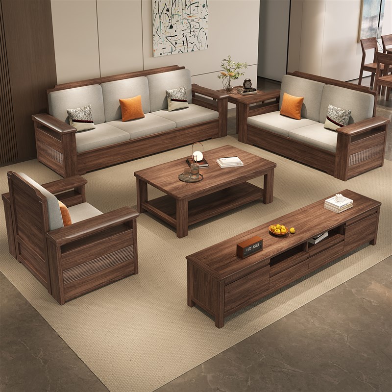需定制简约黑胡桃实木沙发组合现代客厅家用小户型沙发2025新款实