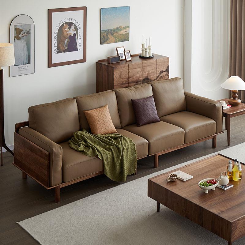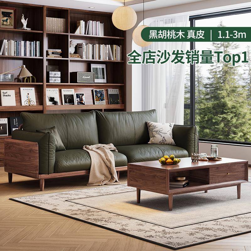宋氏美学新中式北美黑胡桃实木沙发北欧轻奢头层牛皮现代客厅家具