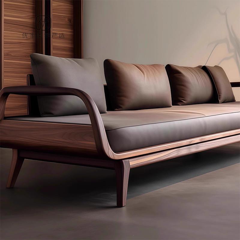 需定制新中式黑胡桃实木沙发侘寂风现代简约小户型客厅禅意高端设