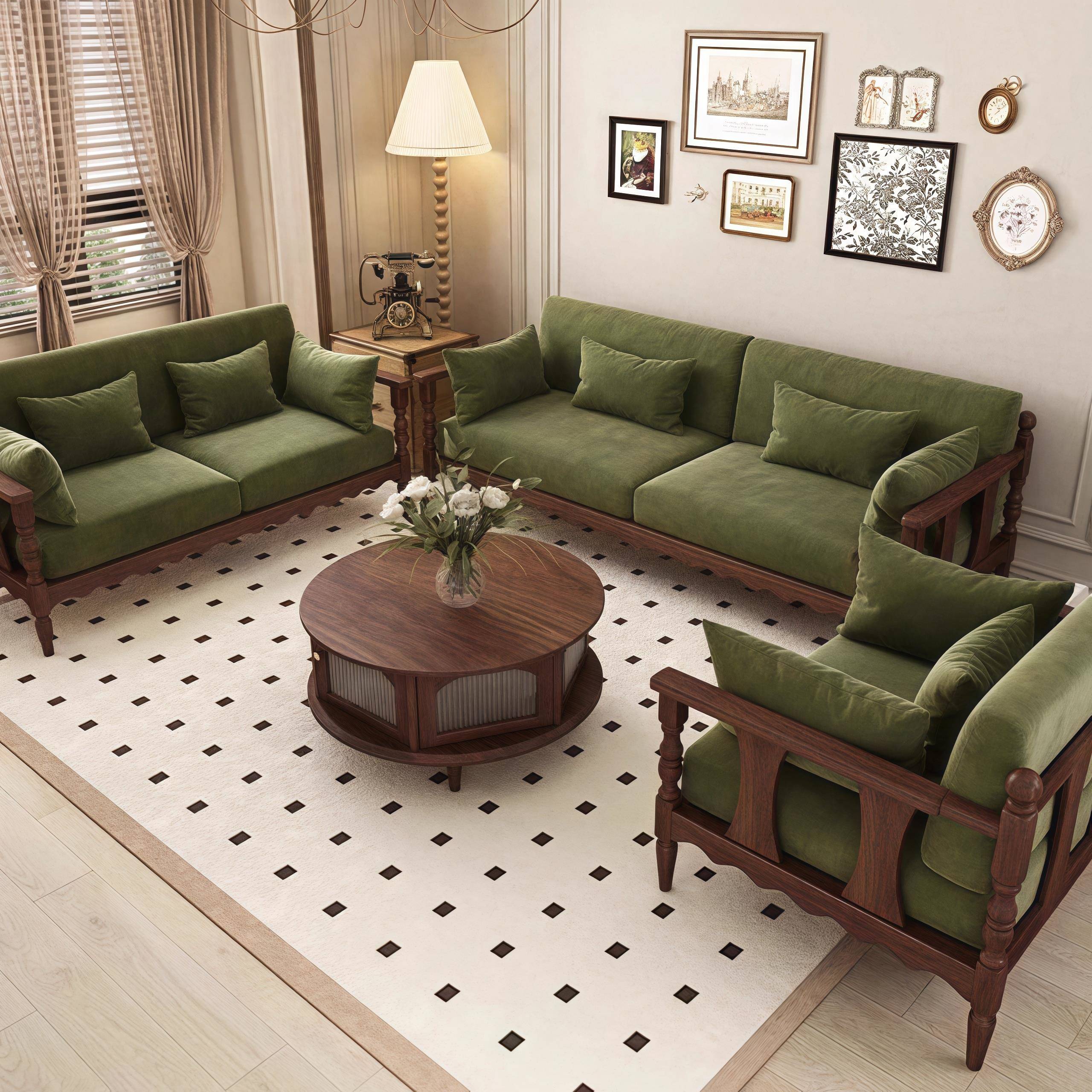 - 仿古实木沙发