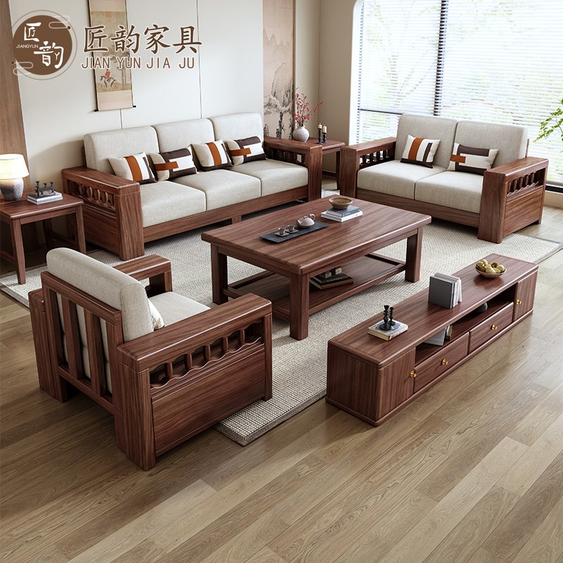 新中式实木沙发北美黑胡桃木简约沙发组合宋代美学禅意大户型客厅