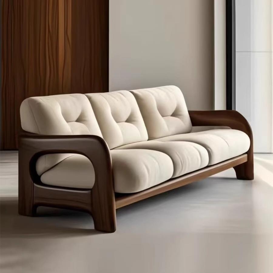 中古风纯实木意式轻奢家用沙发黑胡桃色酒店客厅家具民宿定制沙发