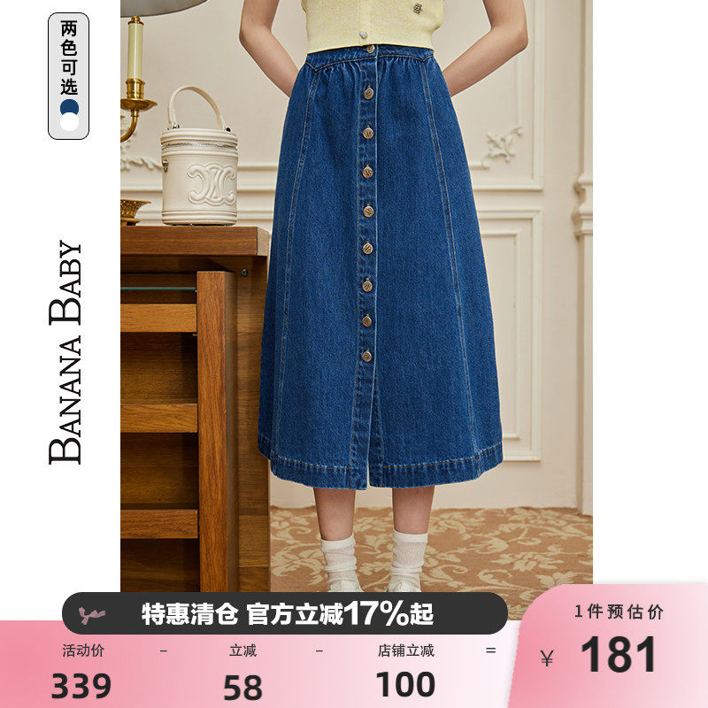 BANANA BABY2026新款A字牛仔半身裙女高腰单排扣中长裙