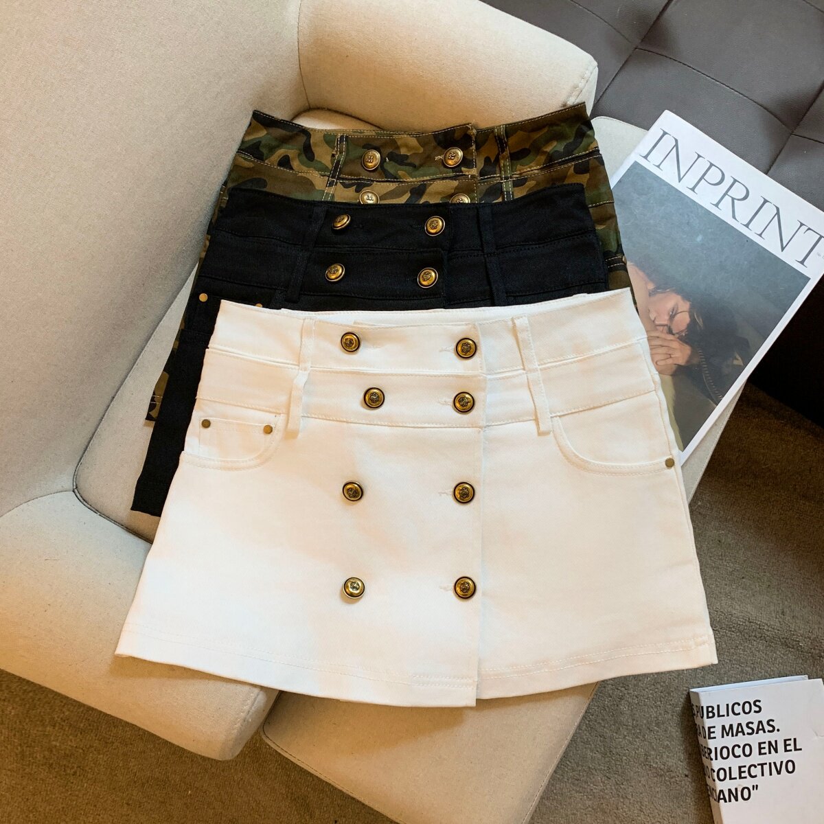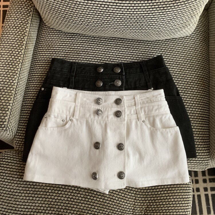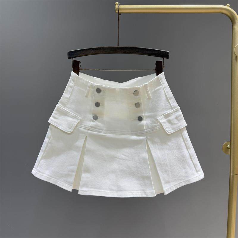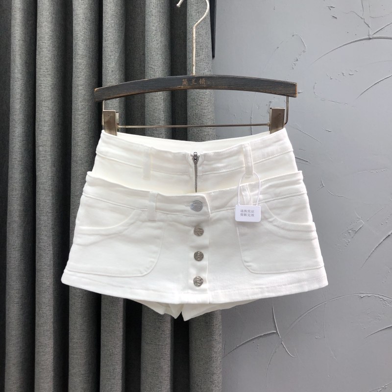 白色低腰单排扣牛仔短裤裙女夏季新款时尚网红设计感A字半身裙裤