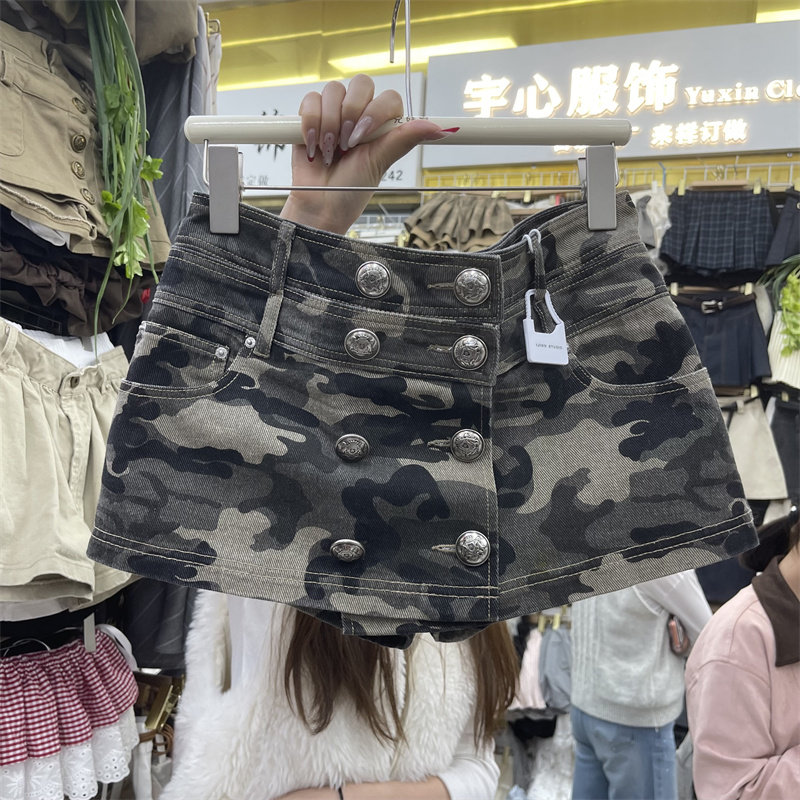 个性迷彩双排扣牛仔半身裙女2026夏季新款显瘦辣妹复古A字短裙