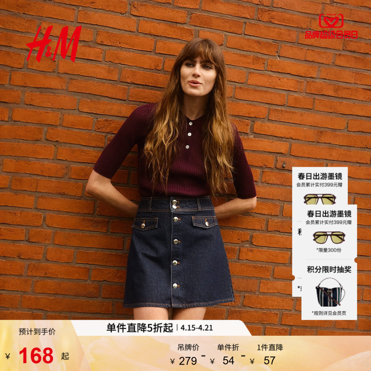 HM女装半身裙夏季竖排扣棉质A字型高腰牛仔短裙1303732