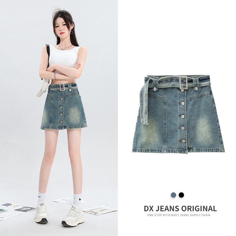 佳选腰带设计感牛仔短裙女排扣2025夏款显瘦a字内衬防走光高腰半