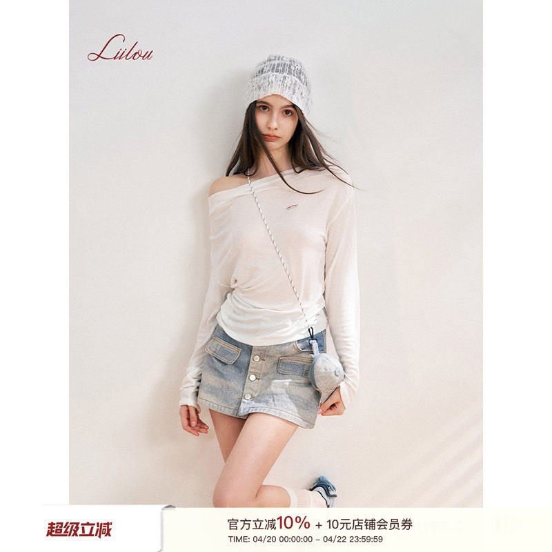 Liilou 牛仔印花 重工水洗 舒适棉质一排扣高腰A字牛仔短裙