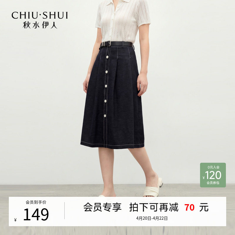秋水伊人时尚复古牛仔风A字半身裙2026年夏季新款高腰单排扣裙子