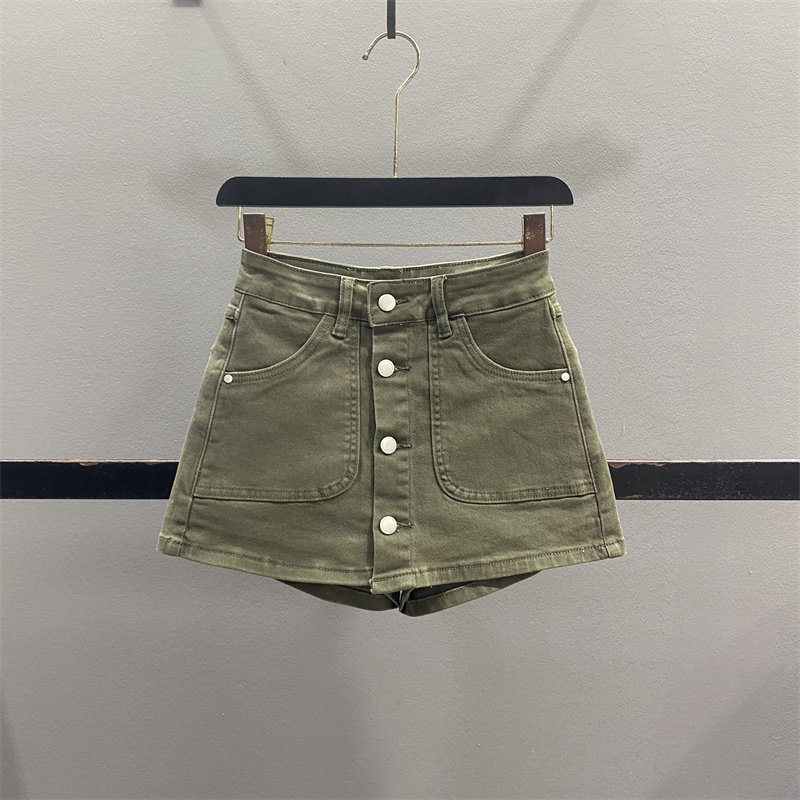 欧货超高腰单排扣牛仔短裤女新款春夏时尚修身打底A字半身包臀裙
